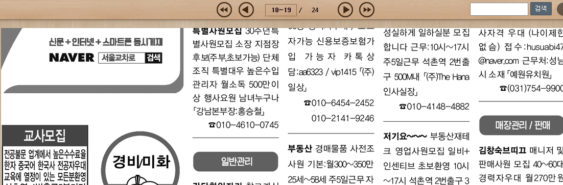 매인 화면에서 바로 구인구직을 살펴볼 수도 있겠지만 교차로신문 그대로를 함께 살펴보니 왠지 일자리가 한눈에 들어오는 느낌이랄까 나름 장점이 있다고 보여집니다.