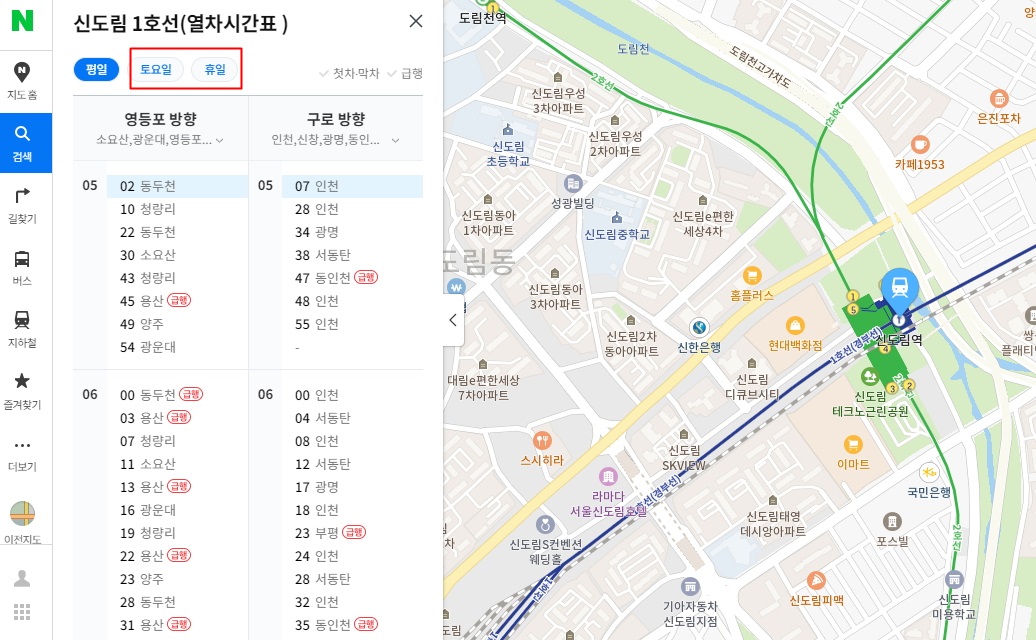 예를들어 신도림역을 이용한다면 신도림역을 클릭하면 아래와 같이 보입니다.