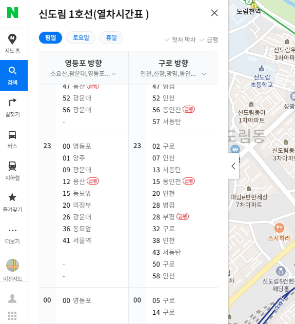 모바일에서도 네이버에 1호선급행이라고 검색하면 아래와 같이 보입니다.