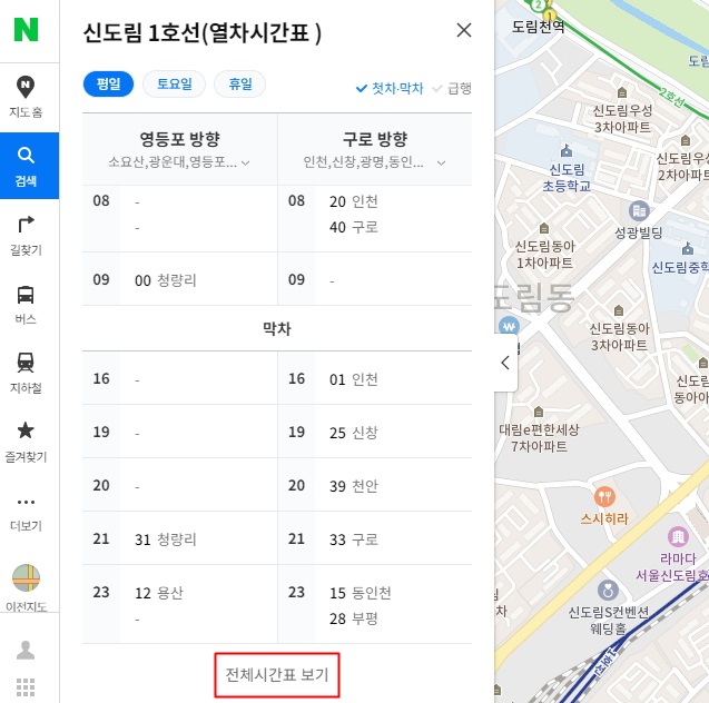 예를들어 신도림역을 이용한다면 신도림역을 클릭하면 아래와 같이 보입니다.
