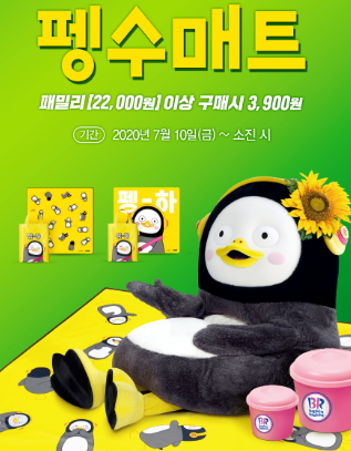 망고탱고와 북극곰폴라베어, 블랙소르베는 작년에 출시된 아이스크림이네요. 그리고 펭수 아슈크림은 올해 6월에 출시되었는데요. 출시 기념으로 7월 1일~7월 31일까지 펭수아슈크림 선택 시 500원만 추가하면 싱글레귤러를 더블주니어로 업시켜준다고 합니다.