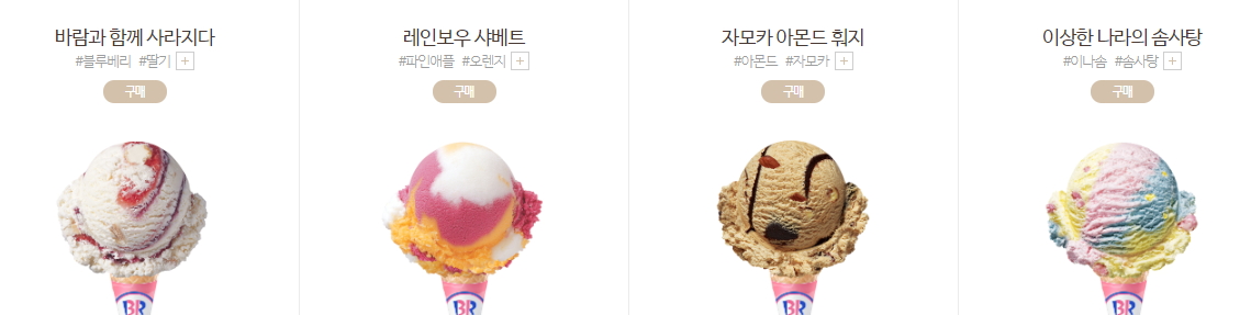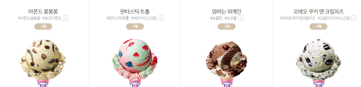 베스킨라빈스 아이스크림 메뉴는 너무나 많아서 도대체 무엇을 먹어야 하나 고민하시는 분들도 꽤 있는데요. 매장에 가면 모든 메뉴를 직접 맛보고 고를 수 있어서 걱정 안 하셔도 됩니다. 모두 맛보았는데도 잘 고르지 못할 때는 다시 먹어봐도 뭐라 하는 사람 없어 더더욱 좋답니다. 그럼 다양한 메뉴를 살펴보겠습니다.