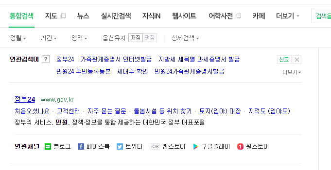 검색사이트에서 민원 24라고 검색하여 접속합니다.