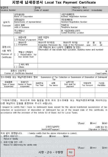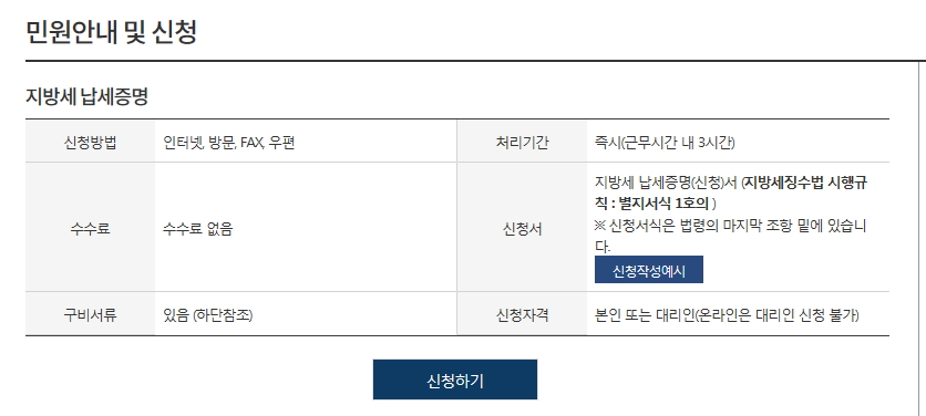 납세증명서는 납세자가 징수유예를 제외하고 체납액이 없음을 증명하는 민원서류인데요. 납부영수증은 납세의무자 본인만 신청할 수 있으며, 제삼자일 경우에는 위임장이 있어야만 신청이 가능합니다.