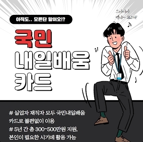 실업자와 구직자로 나뉘어 있던 내일 학습카드는 올해부터 국민내일배움카드로 통합되었습니다.