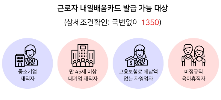 국민 내일배움카드는 자기 계발을 희망하는 국민들이면 누구나 신청 가능합니다. 단, 공무원이나 재학생, 일정 임금 이상의 대규모 기업 종사자 그리고 사학연금 대상자, 일부 고소득 자영업자는 제외되고 있습니다.