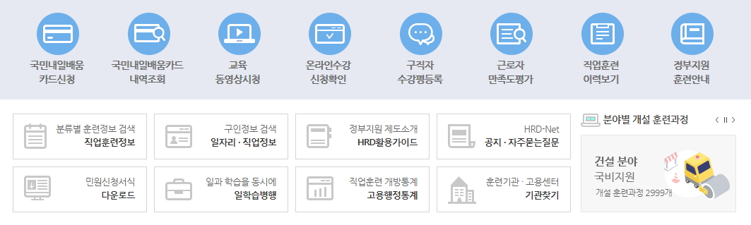 실업자와 구직자로 나뉘어 있던 내일 학습카드는 올해부터 국민내일배움카드로 통합되었습니다.