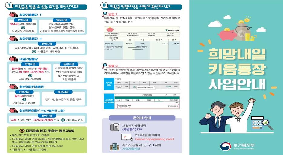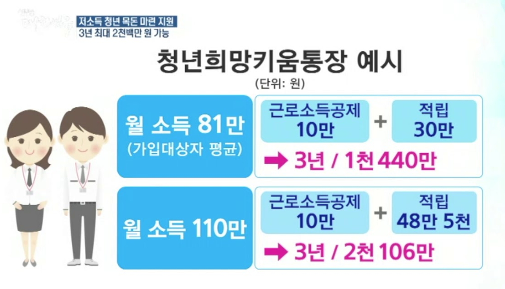 이 프로그램은 특히 일하는 청년을 대상으로 하기 때문에 신청이 가능하며, 총 근로소득이 가구당 중위소득의 20% 이상인 일하는 생계 수급 청년이 가입할 수 있는 제도를 말합니다.