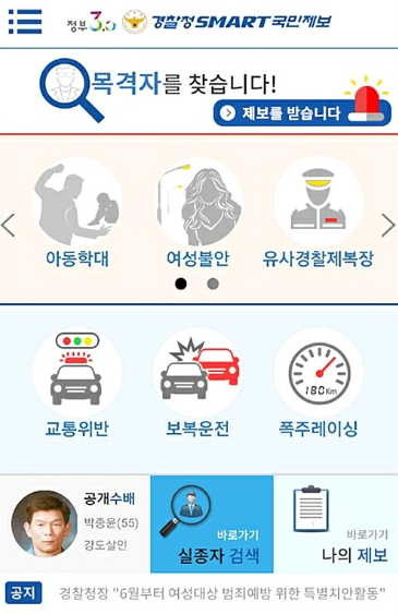 오늘은 경찰청에서 운영하는 스마트 국가 정보 서비스라는 애플리케이션을 소개하고자 하고자 합니다. 요즘은 사람들이 범죄를 저지른 사람들을 휴대전화나 웹을 통해 경찰에 손쉽게 신고할 수 있는데요. 폭력이나 보복운전 또는 난동과 여성을 대상으로 한 범죄에 대한 증거와 간단한 사건 내용을 만들어 제출하면 관할 경찰서에서 1~2일 이내에 결과를 알려주고 있습니다.