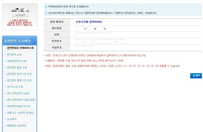 경찰청에서 운영하는 이파인에서는 운전면허증 진위 조회, 운전면허 조회, 교통법규 위반 조회와 더불어 운전 경력증명서 발급 등 운전면허 관련 다양한 서비스로 앞으로 경찰서까지 방문하지 않아도 편리하게 이용할 수 있는 사이트입니다.