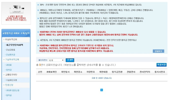 인증서로 로그인하시면 바로 무인단속내역과 부과된 과태료와 미납과태료 등을 확인할 수 있는데요. 무인 과속단속카메라에 찍혔다고 해서 이파인에서 바로 조회가 되는 것은 아닙니다.