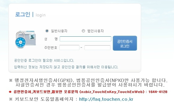 공인인증서를 준비하시어 로그인을 해주시면 됩니다.