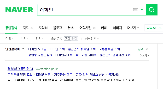 포털 검색사이트에서 이파인을 검색을 하시면 경찰청교통민원24 홈페이지가 나오는데요. 홈페이지에 접속하여 같이 해보겠습니다.
