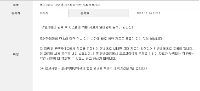 자료를 판독하고 과속으로 등록되는시간까지는 어느 정도 시간이 걸리므로 3~4일 정도 이후에 이용해 보시기 바랍니다.