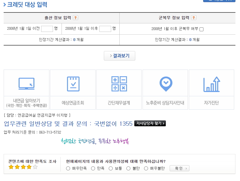 공인인증서 없이 간단 조회 가능한 예상연금 모의계산은 가입조건에 따라 소득, 가입기간, 본인 가입기간에 대한 기본정보 등을 입력하면 즉시 예상 금액, 수령액을 확인할 수 있습니다.