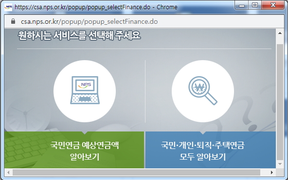 조금 불편하지만 공인인증서가 있어야 확인가능한 예상연금액 조회는 국민연금, 퇴직연금, 개인연금, 주택연금을 선택하여 알아볼 수 있는 서비스입니다. 가입자의 월평균 소득을 반영하여 계산되며 평균소득율과 기준 소득 상승률에 따라 추정금액이 변경될 수 있습니다.