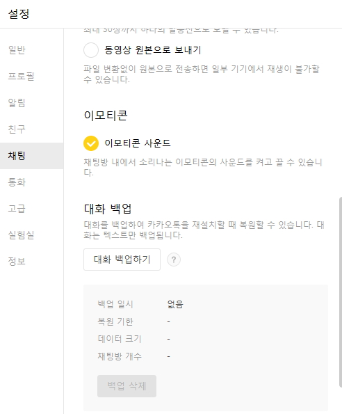 백업되는 대화는 택스트 내용만 백업이 가능하며 사진, 동영상, 파일, 1000자 이상 장문메시지, 비밀 채팅 및 오픈 채팅 대화 내용은 제외된다고 합니다. 아쉽지만 직접 해보니 읽은 대화 대용은 거의 복구가 되는듯하더라고요. 또 읽지 않은 대화 내용은 복구 안된다고 나와있습니다. 참고들 하시고 중요한 메시지나 파일이 있다면 그때그때 보관해주는 습관을 갖는 게 제일이네요