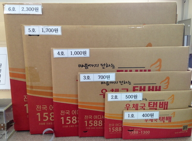 그런데 요즘엔 우체국에 규격별로 박스가 잘 구비가 되어있어 우체국 박스를 편리하게 사용할 수 있습니다.