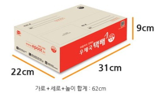 만약에 우체국박스를 이용하지 않으시다면 박스크기를 우체국 박스 기준으로 사이즈를 재어 보시는 것이 좋습니다. 그리고 당일 특급 우편물은 중량 20kg이하 크기는 140cm 이내 가능하니 참고하시기 바랍니다.
