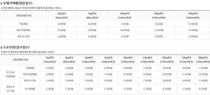 또한 우체국 택배접수는 창구 접수가 있고 방문접수가 있습니다. 가격은 서로 조금 틀리고 있는데요. 요즘 방문 접수가 있어서 무게가 많은 택배는 전화나 인터넷으로 접수하면 우체국 택배원이 원하는 장소로 직접 방문하여 가져 가기 때문에 지금은 우체국 택배 이용 시 굉장히 편리해졌답니다.