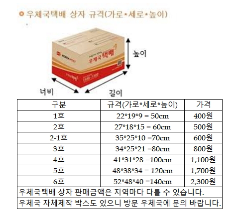 우체국박스 크기와 이용 가격 정도는 미리 확인하여 알아두시어 편리하게 이용하시기 바랍니다.