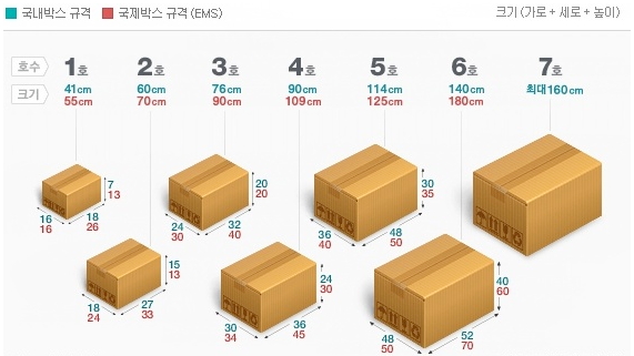 만약에 우체국박스를 이용하지 않으시다면 박스크기를 우체국 박스 기준으로 사이즈를 재어 보시는 것이 좋습니다. 그리고 당일 특급 우편물은 중량 20kg이하 크기는 140cm 이내 가능하니 참고하시기 바랍니다.