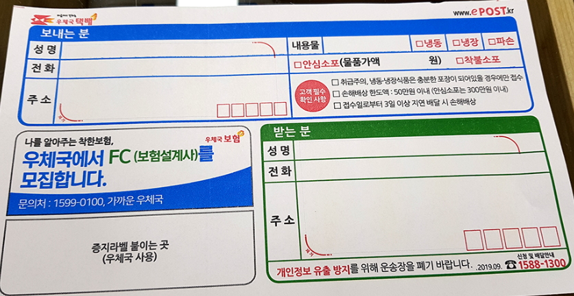 우체국이용시 택배로 보내야 할 것들이 양이 작다면 문제 되지 않지만, 반대로 많은 양을 택배로 보내려고 한다면 우체국으로 직접 가지고 가서 우체국에서 다시 포장해야 되는 번거로움도 만만치 않은데요. 이때 미리 우체국에서 박스를 가져다 준비해놓으면 편리하답니다.