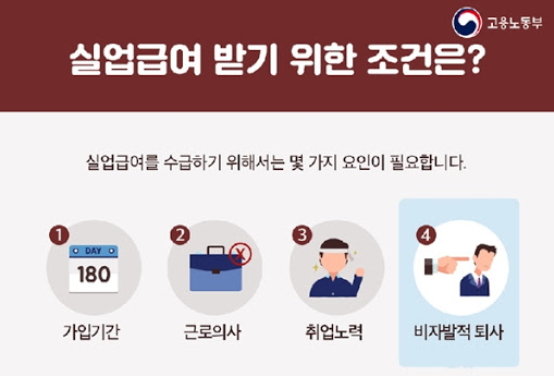 직장을 다니다 보면 본의 아니게 실직하는 때도 있답니다. 그런데 고용보험 가입되어있는 곳에서 일해야만 받을 수 있는 것 꼭 기억하세요. 요즘은 거의 모두 고용보험가입이 의무로 되어있어서 다행인데 가끔 그렇지 않은 곳도 있답니다. 그래도 받을 수 있다 하니 아래 참고해 보시기 바랍니다