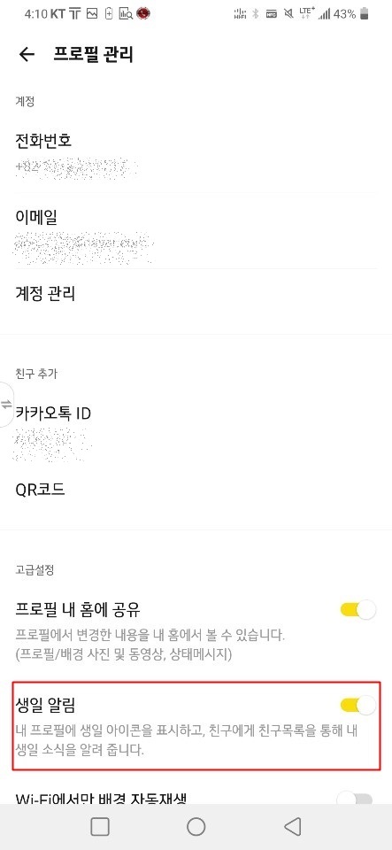 카카오톡 생일설정 알림 끄는 확실한 방법